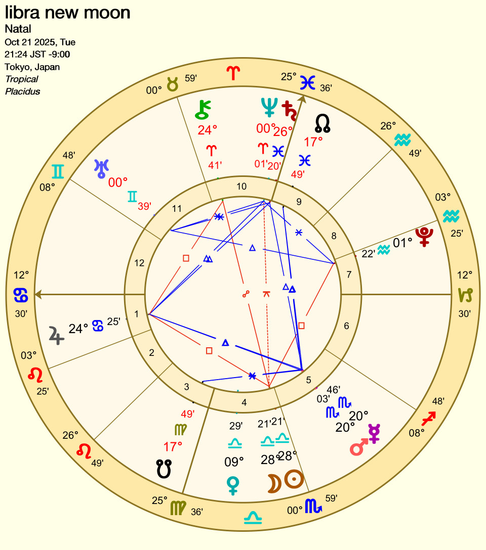 2025年10月21日21時24分天秤座29度で新月を迎えます。